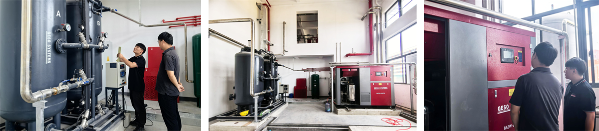 -Hệ thống xử lý hậu xử lý: Công suất xử lý 20m³/phút, độ chính xác lọc 0,01μm, điểm sương có thể điều chỉnh từ -40 ° C đến +3 ° C, thiết kế thoát nước hoàn toàn tự động.